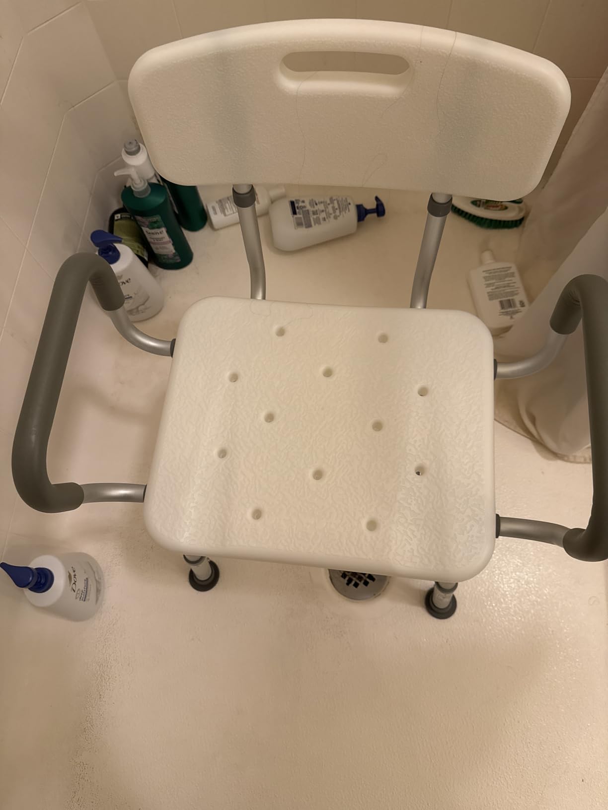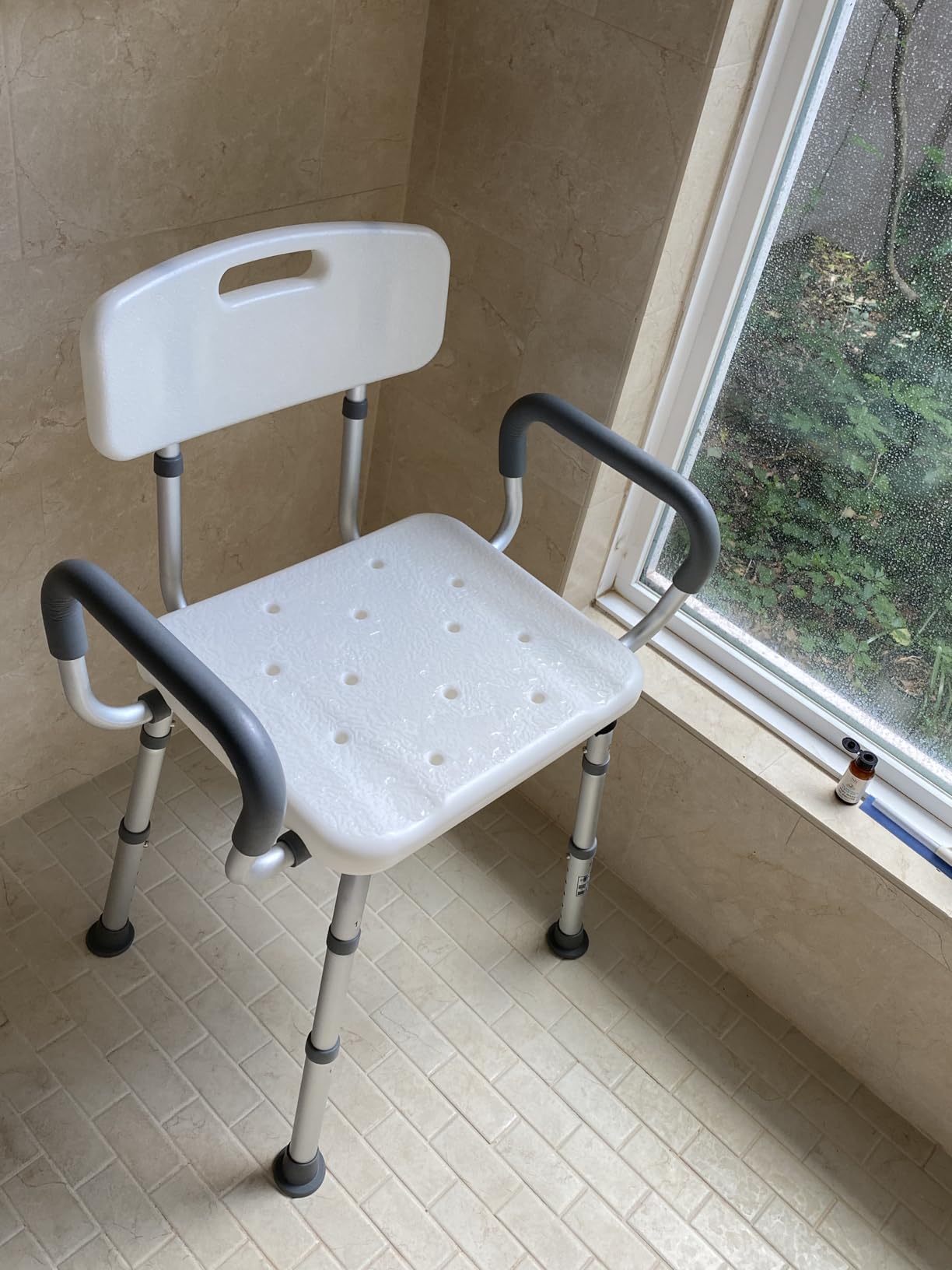 The HOMLAND Shower Chair with Arms and Back is fantastic for my elderly father. The 500 lbs capacity feels super sturdy, and the adjustable height makes it perfect for him. The suction feet keep it secure in the tub. It’s given him safe, independent showers!